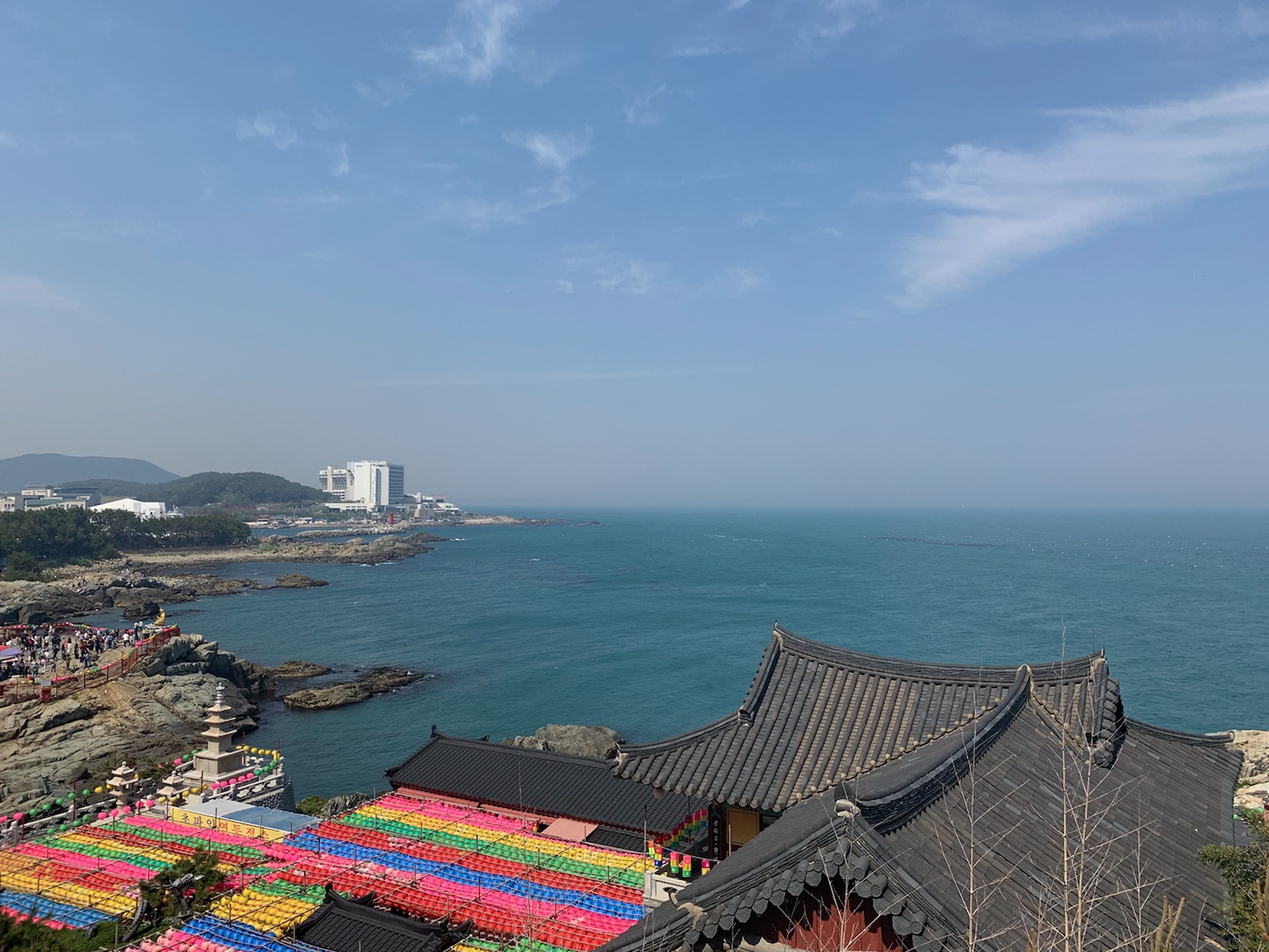 부산 용궁사 작년에 부산을 방문했을 때 마침 석가탄신일이 있는 5월이라 하늘을 가득 메운 알록달록 연등을 볼 수 있었습니다. 기장에 위치한 해동 용궁사는 그 어느 곳보다 신앙의 깊은 뜻을 담고 있으며, 진심으로 기도하면 누구나 현몽을 받고 소원을 이루어 준다는 곳으로 유명합니다. 그래서인지 평일인데도 많은 사람들이 방문하시더라고요. 심지어 코로나 전에는 한국에 오면 꼭 방문해야 하는 여행지 중 하나로 꼽혀 많은 외국인들에게 사랑을 받은 곳이었습니다. 탁 트인 기장 앞바다에 위치한 용궁사는 속세에서 받은 모든 스트레스를 날려버릴 수 있는 그런 힐링의 공간으로도 자리 잡고 있습니다.