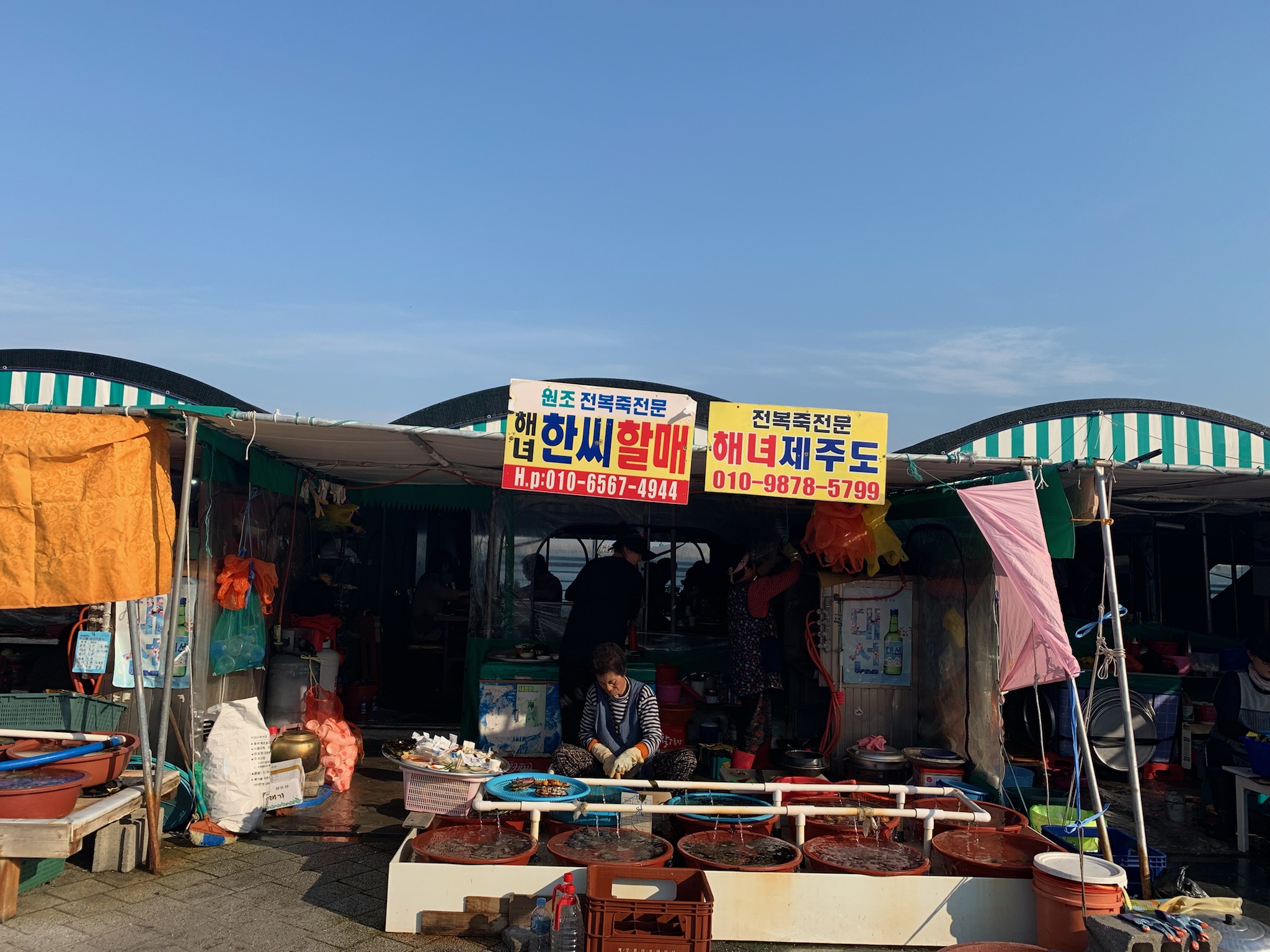 기장 연화리 해물촌 해녀분들이 직접 잡아 올린 이곳의 해산물은 싱싱하고 맛이 좋아 관광객들 뿐만 아니라 부산 주민들도 종종 찾는 곳으로 유명합니다. 포장마차 안으로 들어가면 나름 오션뷰(?)에서 해산물을 즐길 수 있습니다.
