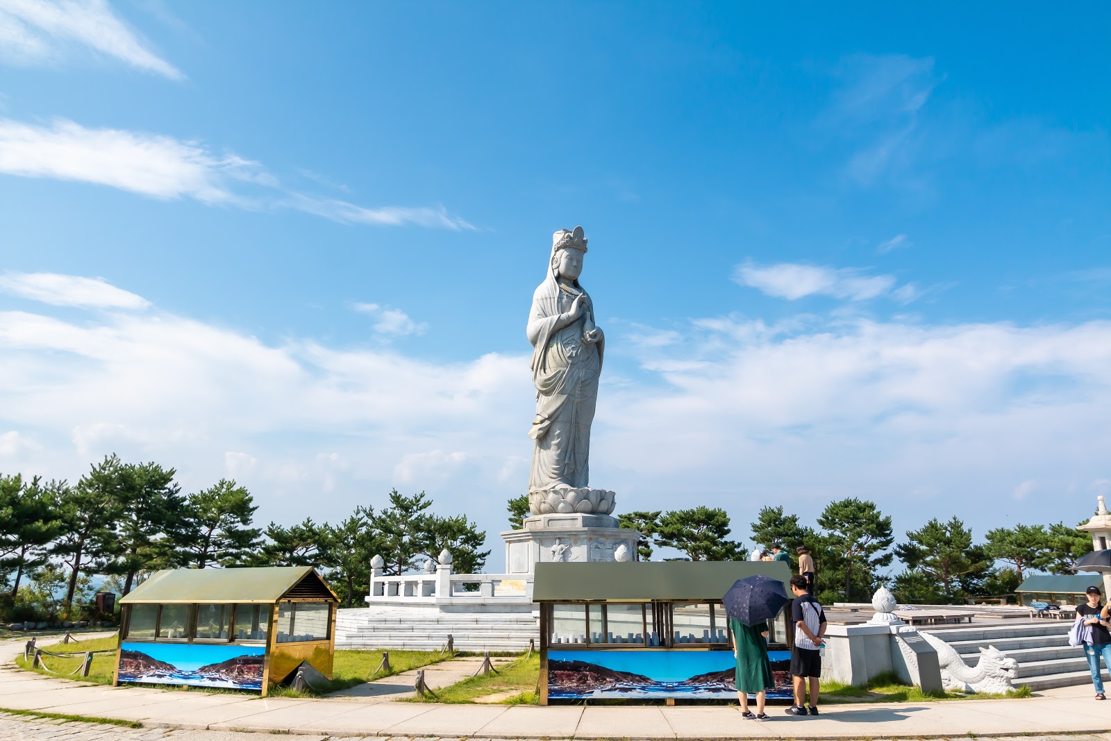 첫 번째로 소개해드릴 곳은 낙산사와 휴휴암입니다. 낙산사와 휴휴암은 동해바다가 한눈에 보이는 절벽에 위치한 사찰입니다. 낙산사는 1340여 년 전 창건했으며, 보물 제499호 칠층석탑과 천수관음상 등 유물이 많은 곳으로 알려져 있습니다. 1340여 년이라는 오랜 역사에도 불구하고 2005년 4월 5일 대형 산불로 인해 낙산사 일부가 소실되었습니다. 산불에도 불구하고 국민들의 간절한 염원과 노력 덕분에 재건할 수 있었습니다. 빼어나게 아름다운 사찰이지만 한쪽에는 모든 게 잿더미로 변했던 화재의 흔적을 아직 보존하고 있는 것을 볼 수 있는데, 그 이유는 화재로 잃어버린 우리의 자연 유산과 사찰을 잊지 말자는 의미에서 보존해놓았다고 합니다. 낙산사에는 동해를 마주한 거대한 관음불이 있는데 이 관음불은 높이 16m, 700톤이 넘는 화강암으로 만들어진 불상입니다. 관음불을 실제로 마주 한다면 그 크기에 압도당해 마음이 절로 경건해지고 숙연해집니다. 또한 낙산사는 일출장소로도 유명해 매년 새해 1월 1일 타종행사와 해돋이 행사를 보기 위해 많은 사람들이 찾았지만, 현재는 코로나로 인해 신년행사는 잠정 중단되었습니다.